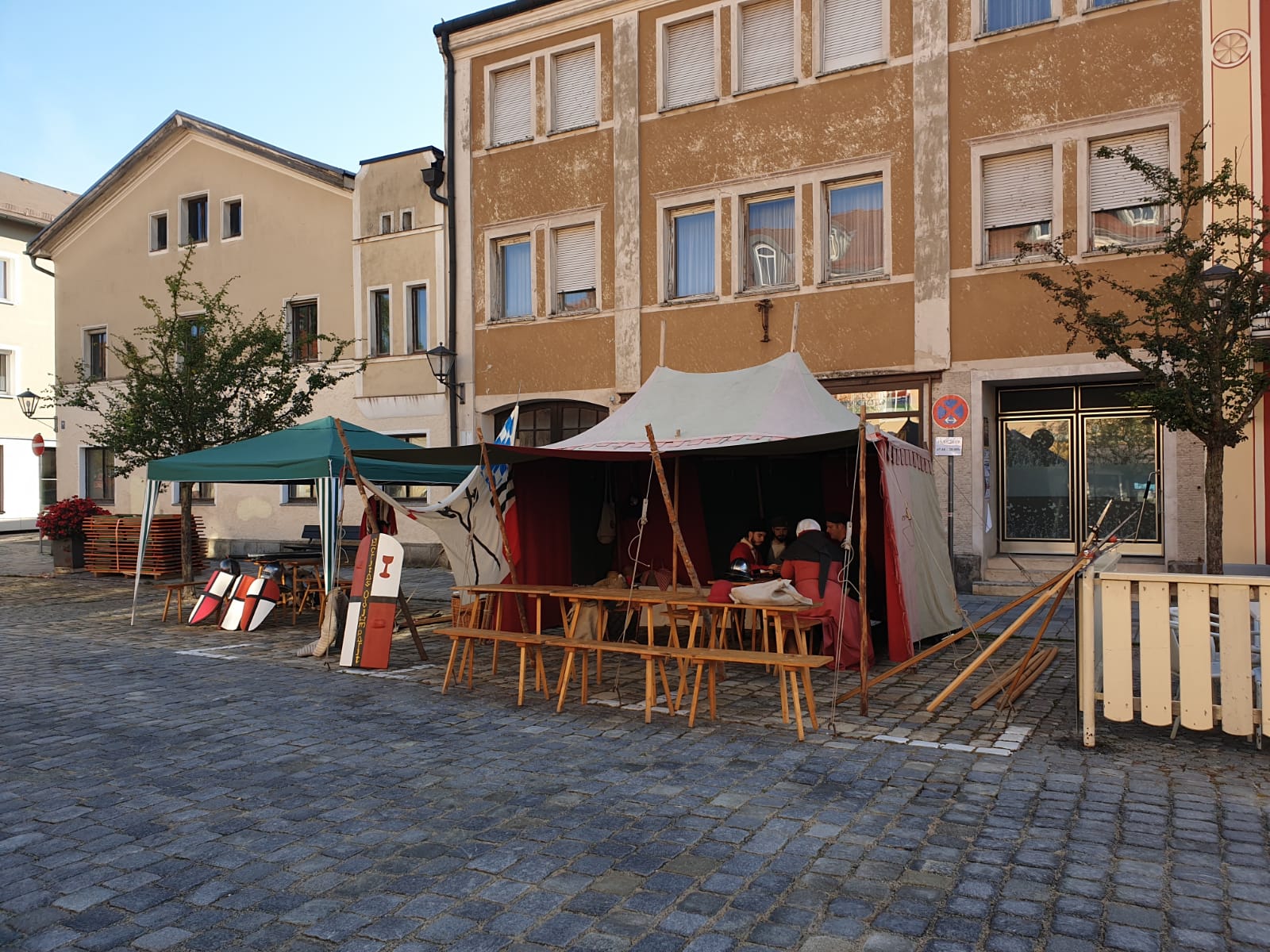 Perfektes Spätsommerwetter lockte viele Besucher auf den Further Stadtplatz. Insgesamt kann sich das Veranstaltungsteam nicht über mangelndes Interesse beklagen und auch an unserem kleinen Stand konnten wir zahlreiche Besucher begrüßen. Alt und Jung kam zu uns. Die jungen Besucher interessierten natürlich vor allem die "coolen" Waffen und Rüstungen. Die Erwachsenen konnten wir aber mit so mancher interessanten Hintergrundinfo versorgen und manches Vorurteil beseitigen. "Da wäre ich jetzt nicht draufgekommen" oder "das hätte ich nicht gedacht" und "Früher war man auch nicht blöd" - nur einige Aussagen von Besuchern.